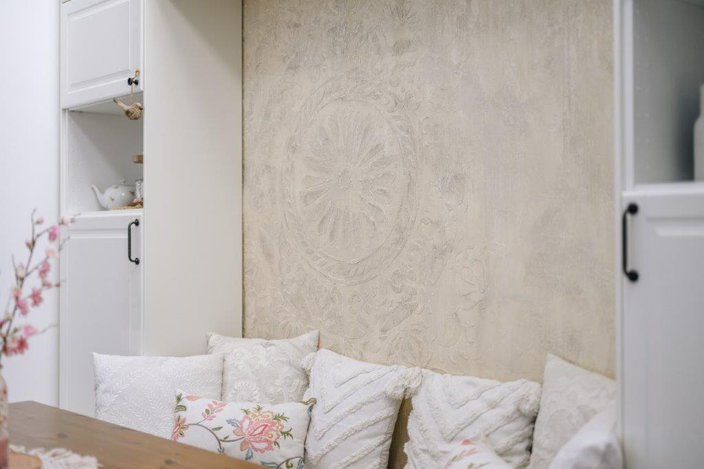 Materiál – volba dekorační techniky, typa dekor vybrané tapety, rozdílná kvalita vybraných barev